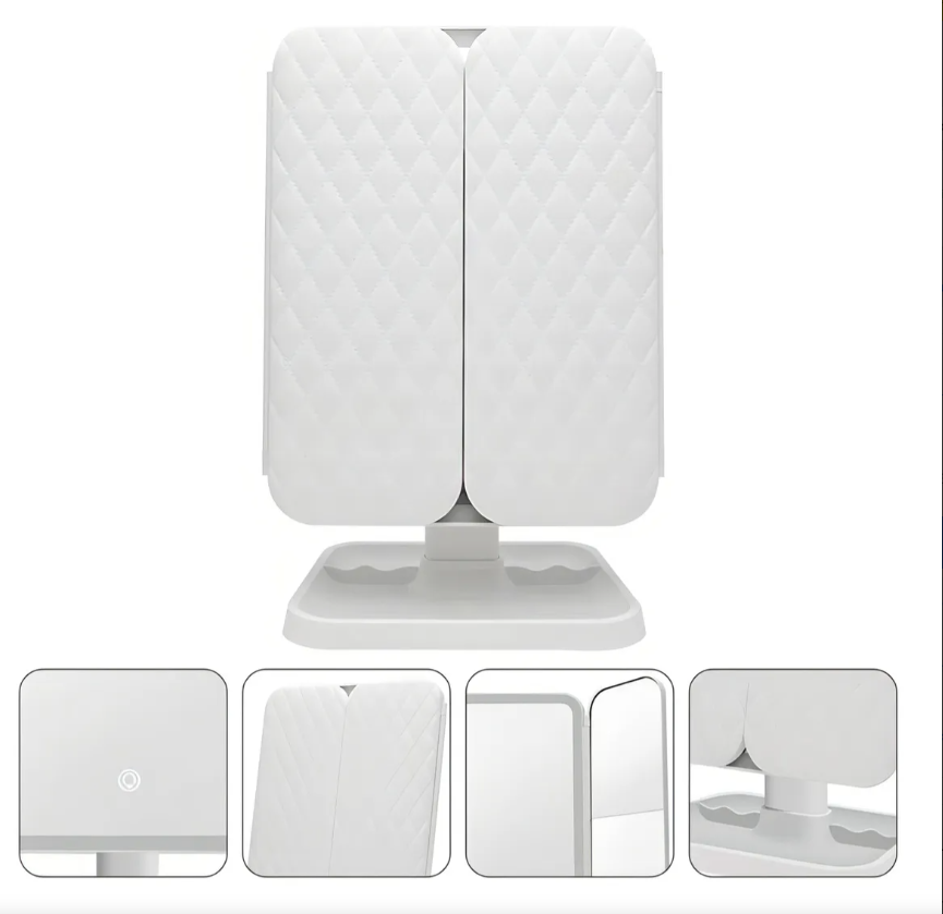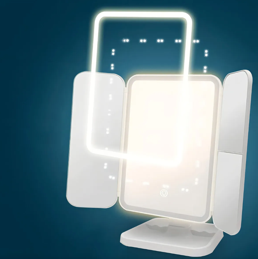 Espejo de maquillaje triple plegable con luz LED y aumento 💄💡🪞