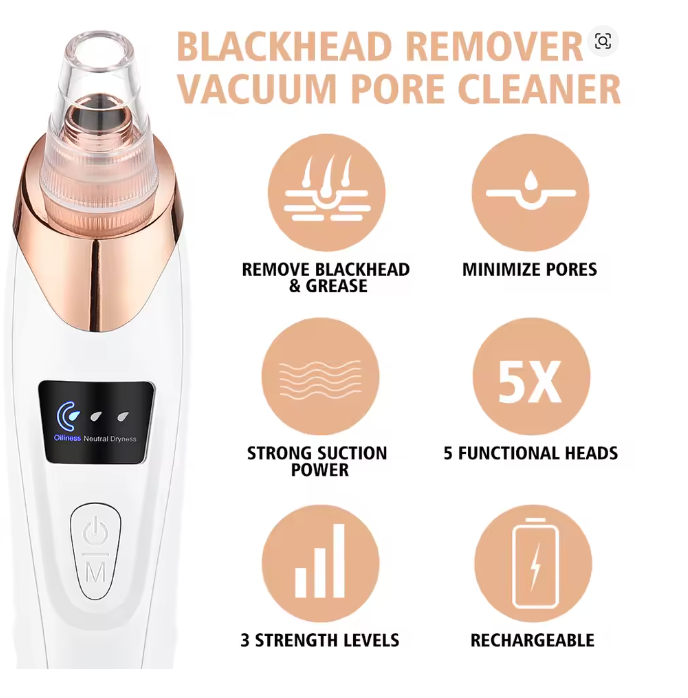 - - 5 cabezales con diferentes funciones Imagina poder tener una piel perfecta y clara sin tener una constante irritación o dañar la cara con productos químicos innecesarios en el proceso.