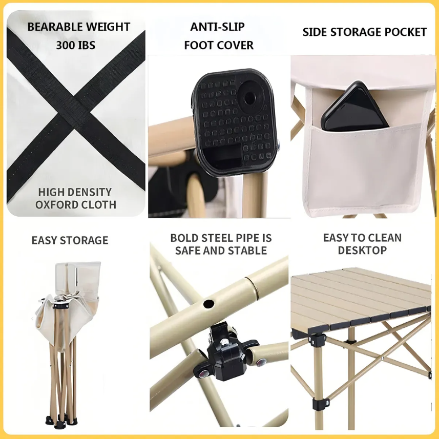 La estructura resistente hace que la mesa plegable sea duradera.. La mesa de aluminio es impermeable, resistente a la intemperie y fácil de limpiar..