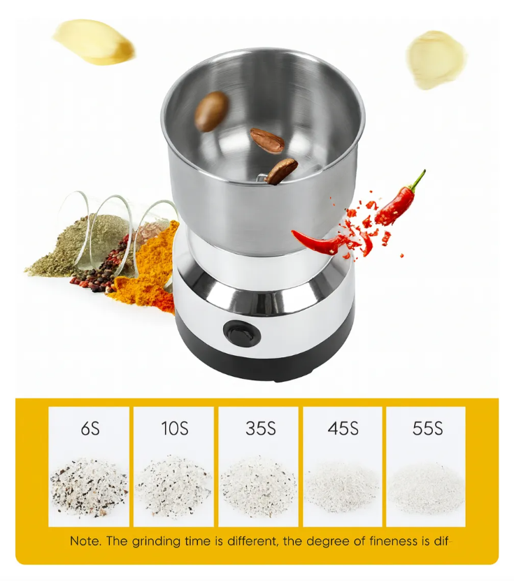 Los diferentes tiempos de molienda y los diferentes niveles de detalle pueden satisfacer todo tipo de necesidades. El vaso de molienda de acero inoxidable de gran capacidad de 300 ml es resistente a las altas temperaturas, la corrosión y tiene una larga vida útil. Características: El diseño transparente de la tapa del vaso le ayuda a ver en el interior. Los diferentes tiempos de molienda y los diferentes niveles de detalle pueden cumplir con todos sus necesidades.