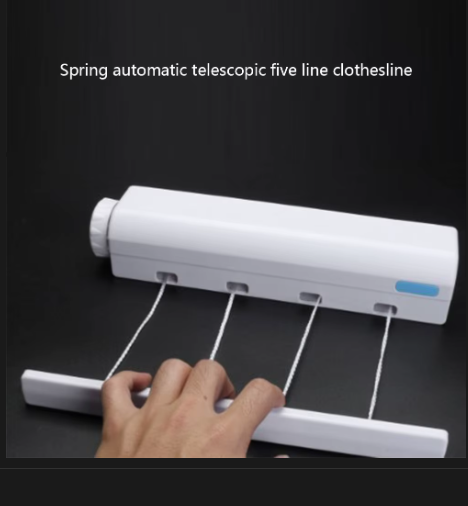 Cuenta con 5 líneas retráctiles.Línea de ropa práctica y que ahorra espacio para el baño, la cocina, el balcón o la terraza.